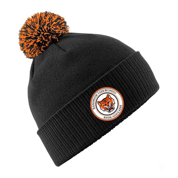 Tricot double épaisseur. Style double, à revers remonté ou descendu. Pompon bicolore. Bords de manche côtelés. 100% Acrylique doux au toucher.